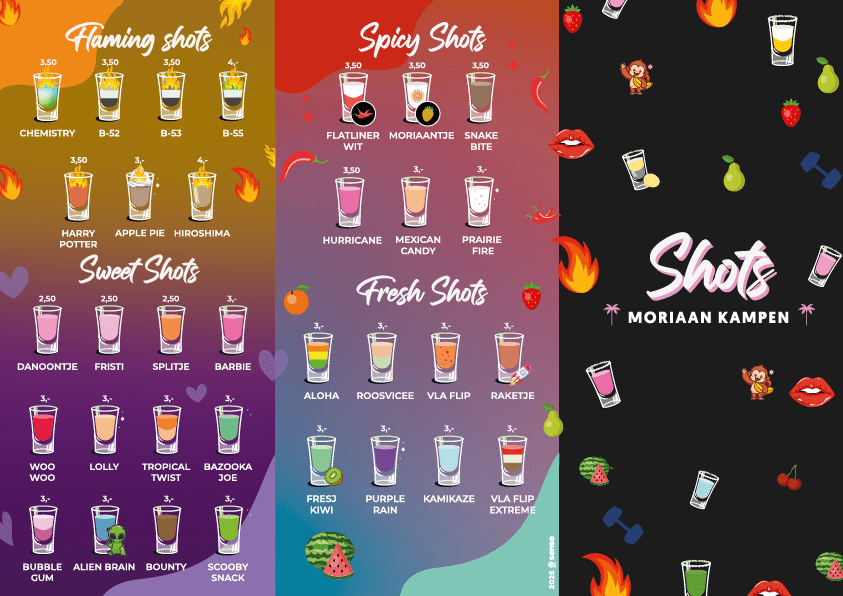 Zin in een feestje? Bij De Moriaan Kampen ben je aan het juiste adres voor de lekkerste shotjes! Onze bartenders shaken en schenken een breed assortiment aan shotjes, perfect voor elke smaak. Of je nu van zoet, fris of een stevige kick houdt, er is altijd iets voor jou.