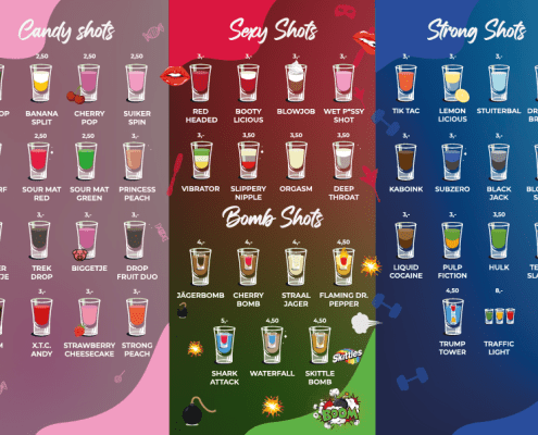 Onze shotjes worden met zorg en professionaliteit aan de bar voor je bereid. Dus daag je vrienden uit, proef iets nieuws en laat je verrassen door onze unieke combinaties.